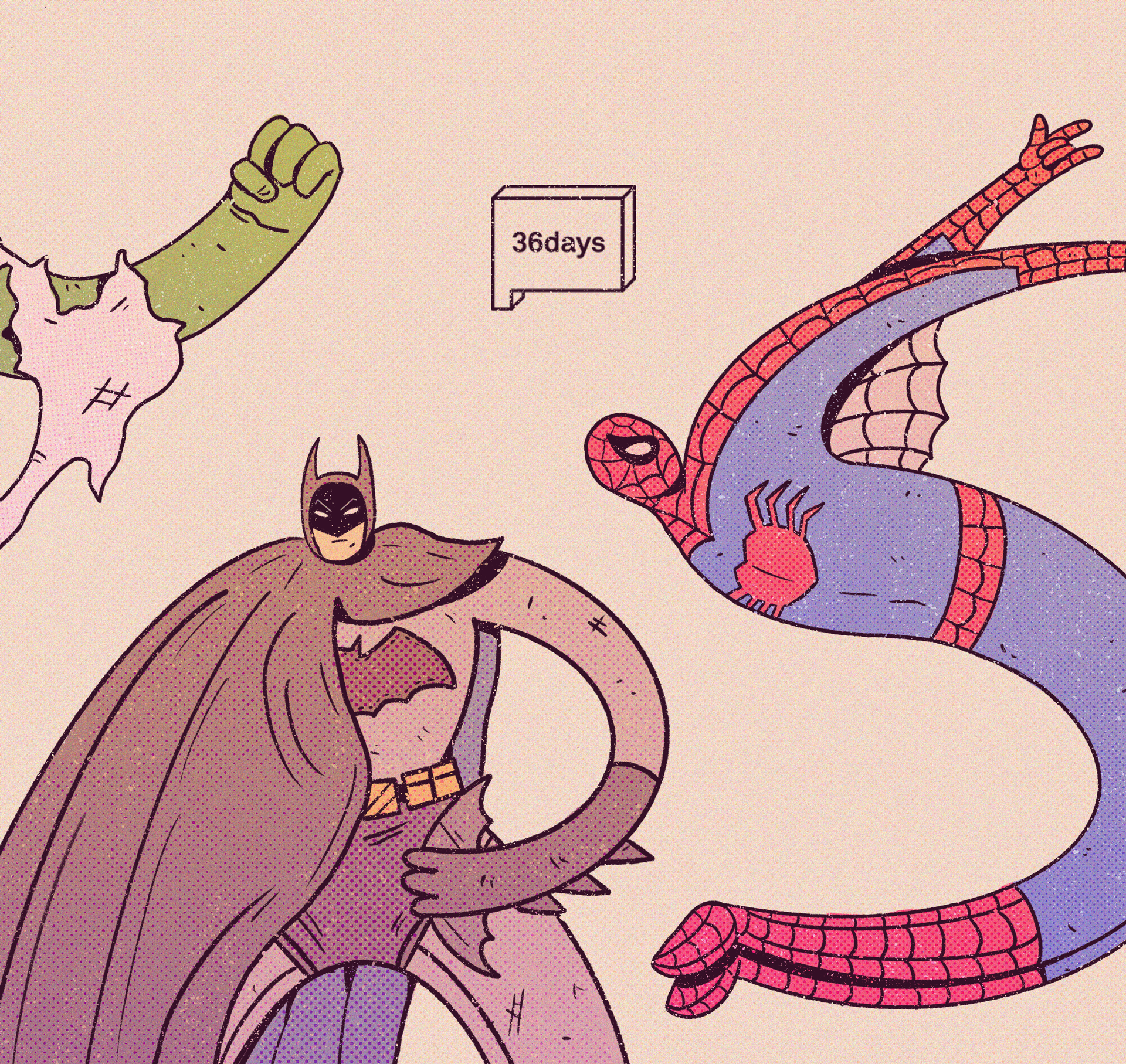 36 Days of Type 2022. - Digital illustration collection based on comicbook superheroes from Marvel and DC.
