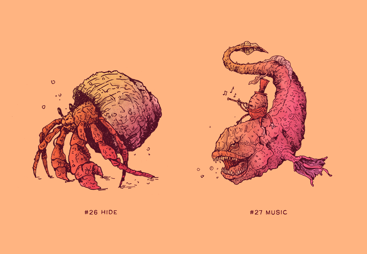 31 ink characters collection for Inktober Challenge 2020. Ink illustrations with digital colors.